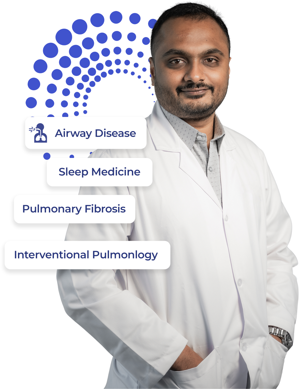 Dr. Vivek Gundappa’s special expertise lies in interventional pulmonology, airway disease, pulmonary fibrosis and sleep medicine. Dr. Vivek’s approach to medicine is evidence based and he actively seeks to stay abreast of the latest advancements in his field. Dr. Vivek is especially skilled at Interventional Pulmonology and has trained in advanced airway and pleural procedures such as: Thoracoscopy, EBUS (Endobronchial ultrasound), Rigid bronchoscopy and advanced central airway procedures, Peripheral pulmonary nodule navigation and biopsy